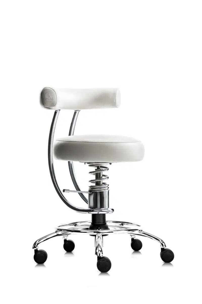 Spinalis Dent ist für spezielle Arbeitsplätze (Zahnärzte, Zahntechniker, Augenärzte…) bestimmt, bei denen es erforderlich ist, sich über den Patienten oder die Arbeitsfläche zu beugen und gleichzeitig maximale Mobilität zu erhalten. Der Sitz, die Armlehnen und die Rückenlehne drehen und bewegen sich unabhängig voneinander, was auch in ungewöhnlichen Positionen Komfort bietet.Dent ist eine gute Wahl für Arbeitsumgebungen, in denen Sterilität äußerst wichtig ist. Es ist mit einem desinfizierbaren Stoff bezogen und hat einen Chromrahmen und einen Beinring.