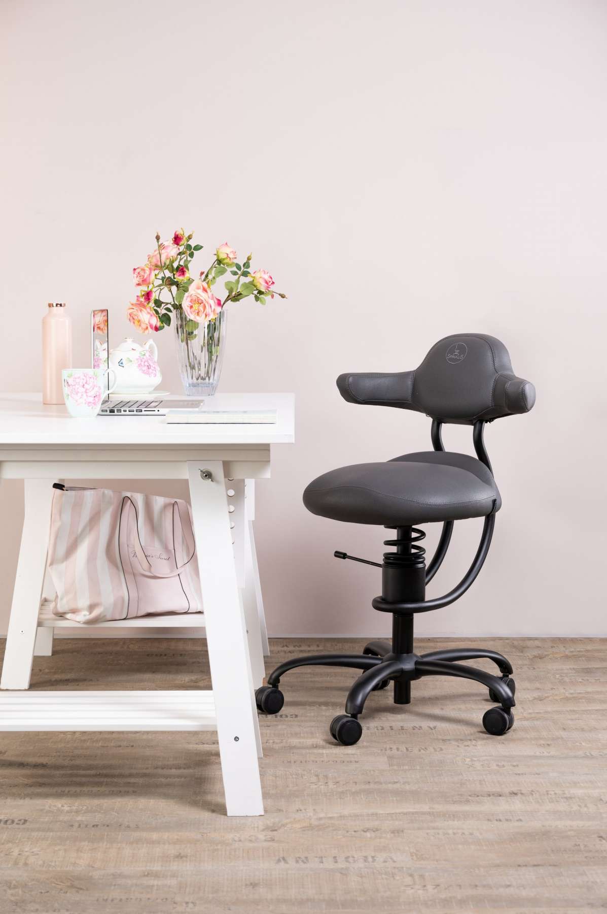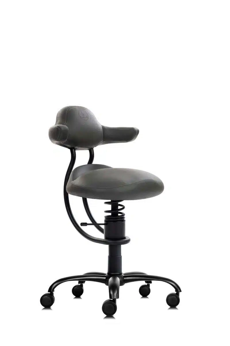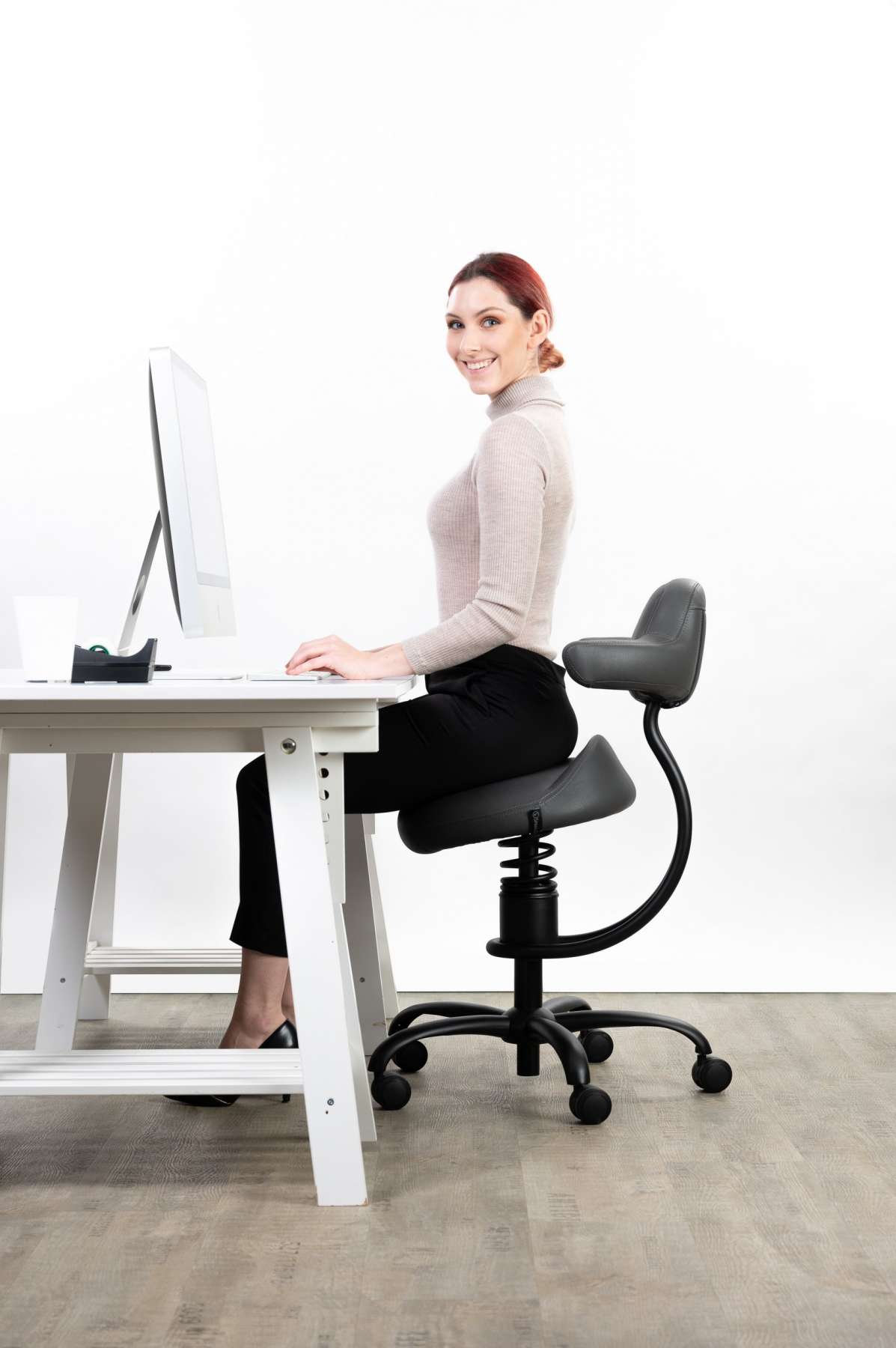 Bürostuhl SpinaliS Explorer ist eine ausgezeichnete Wahl für Benutzer, die ihren Sitz etwas höher einstellen und dennoch mobil bleiben möchten. Eine bequeme minimalistische Rückenlehne und teilweise Armlehnen behindern Ihre Arbeit nie. Die Armlehnen sind nämlich etwas kürzer und der Stuhl kann leicht näher an den Schreibtisch gerückt werden. Der Sitz weist die Form eines Sattels auf, ist jedoch aufgrund seiner abgerundeten Form auch für Frauen geeignet, die Röcke tragen. Ein Hybrid zwischen Smart und Rodeo wird Sie mit seiner Funktionalität beeindrucken. Er ermöglicht bequemes und aktives Sitzen. Rückenlehne und Sitz können in höhere Positionen eingestellt werden.