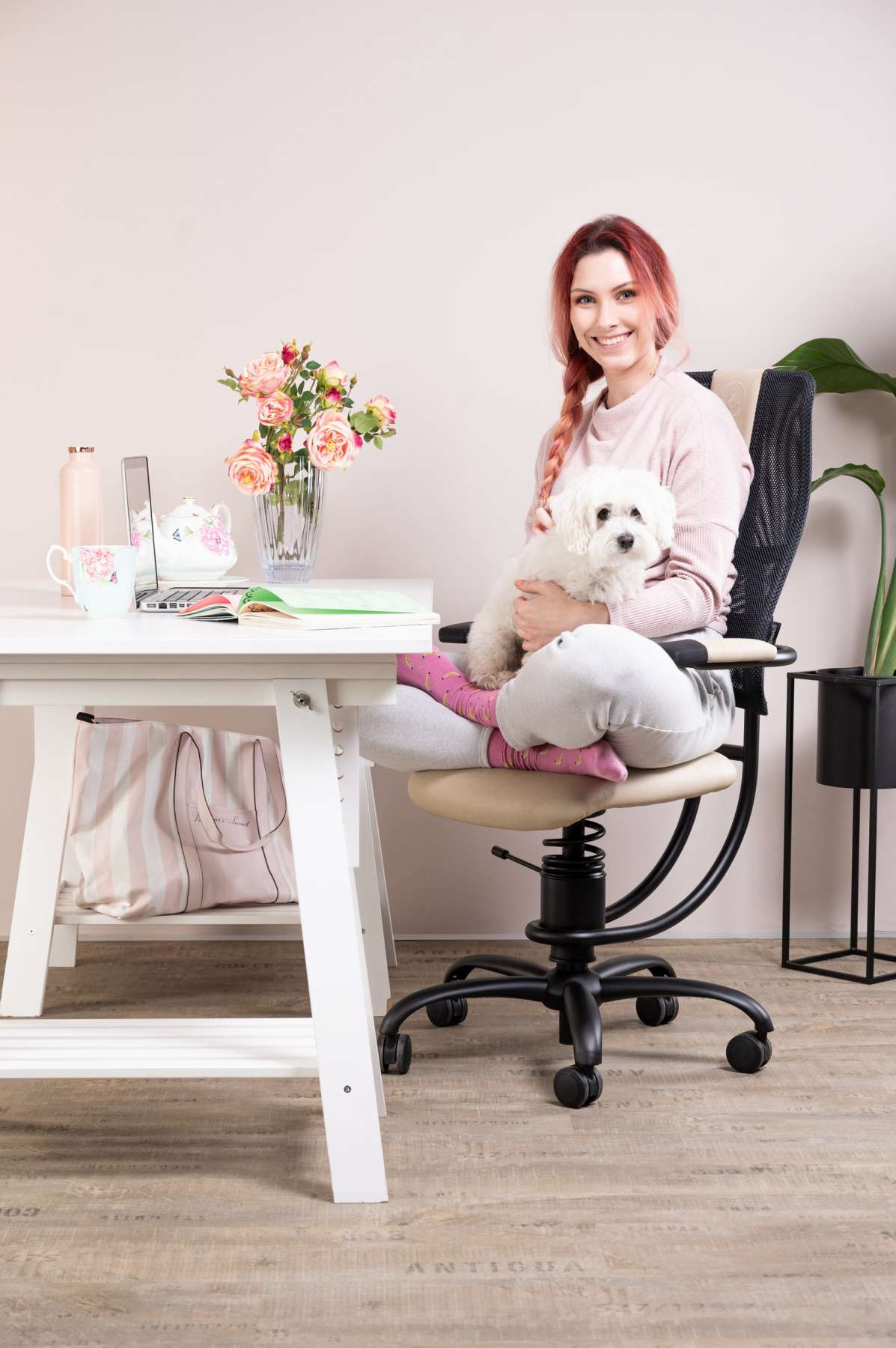 Deklica telovadi ob pisarniškem stolu Basic