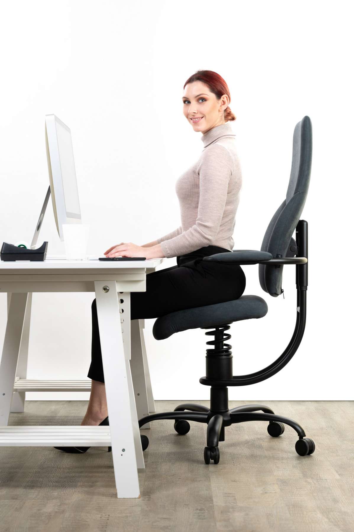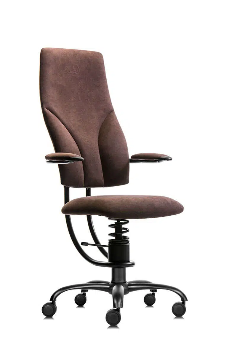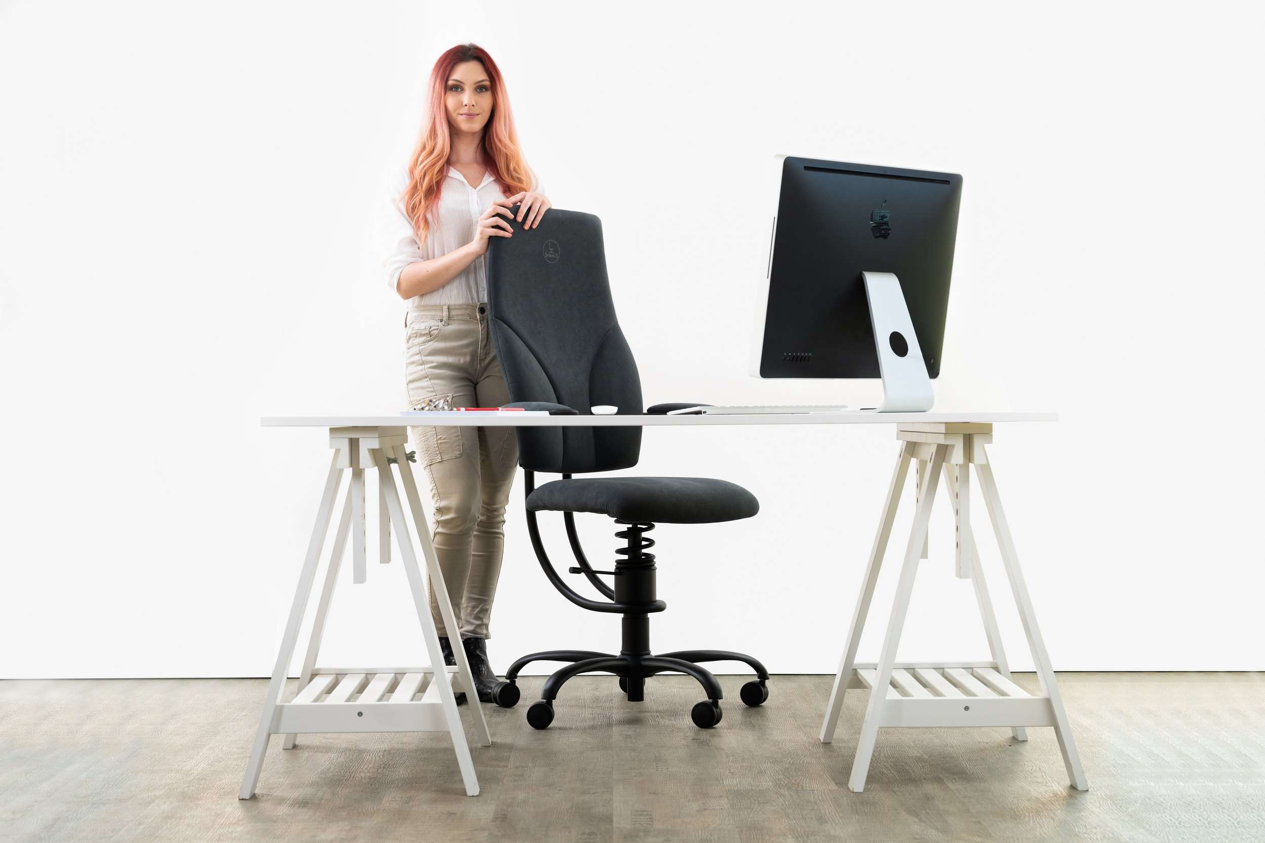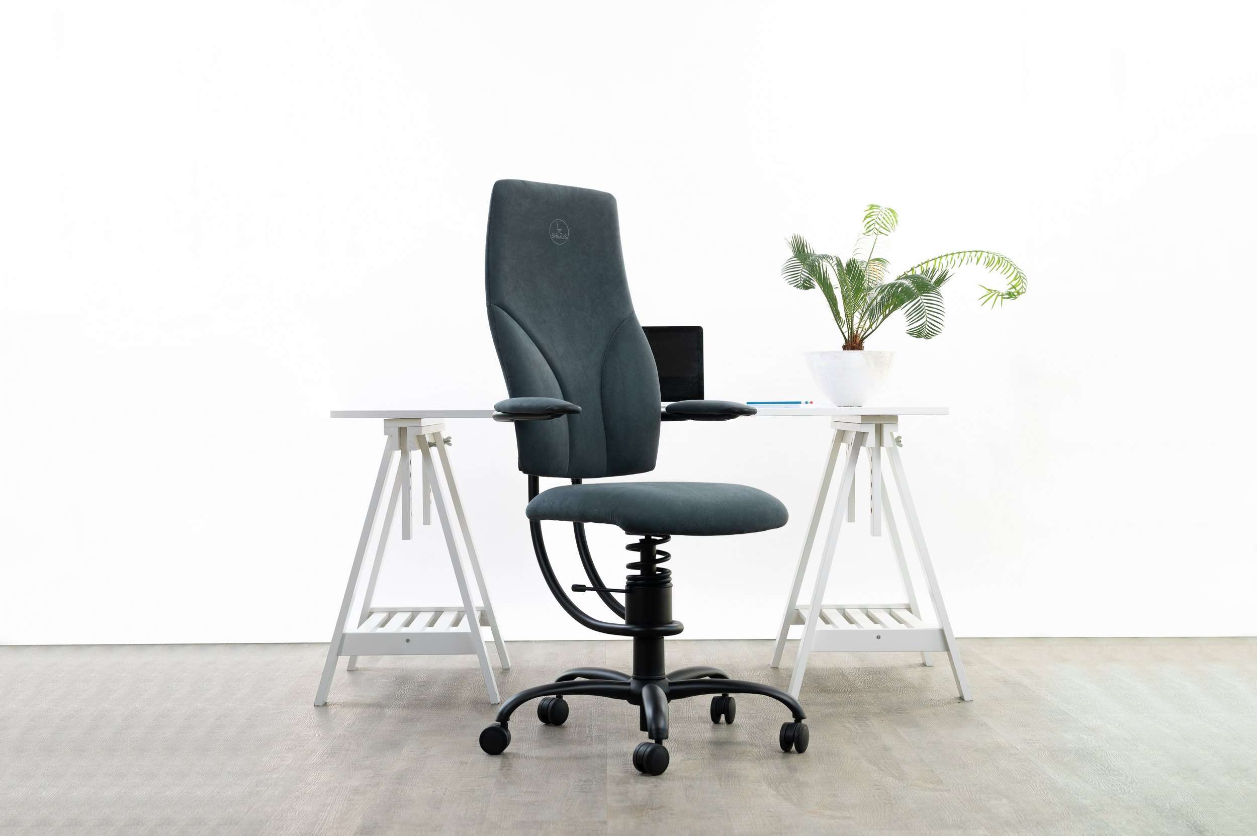 Der Navigator ermutigt Sie, wie alle SpinaliS-Stuhlmodelle, durch den flexiblen Sitz zum aufrechten Stehen und Ihren Bewegungen zu folgen. Dadurch kommt es nicht zu Fehlstellungen, wie es bei festsitzenden Stühlen häufig der Fall ist. Im Lendenbereich ist die Rückenlehne gepolstert und ergonomisch gestaltet, was sich positiv auf das Wohlbefinden auswirkt. SpinaliS Navigator ist die ideale Wahl für alle, die einen ergonomischen Stuhl mit hoher Rückenlehne wünschen und wird daher am häufigsten von den etwas Größeren unter uns gewählt. Sein höhenverstellbarer Rücken mit zusätzlicher Lordosenstütze ist mit hochwertiger Mikrofaser in edlem Alcantara-Look verkleidet.